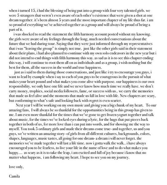 雖然 Camila 內文大致上是說自己的心情和對粉絲跟未來的一番感謝