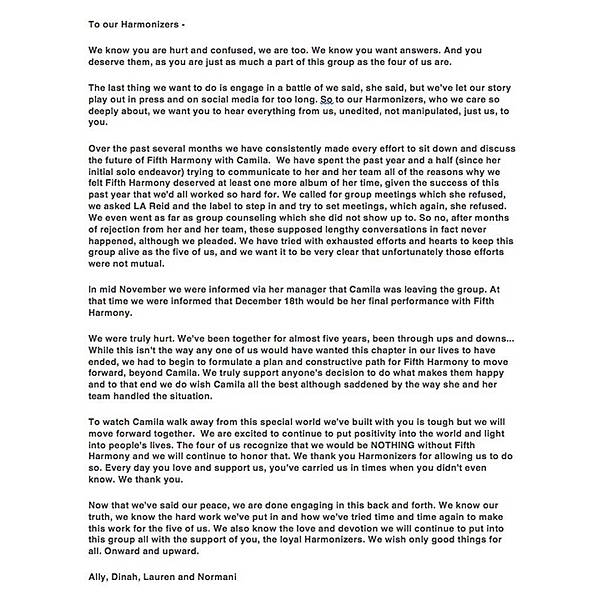 — Fifth Harmony (@FifthHarmony) 2016年12月20日